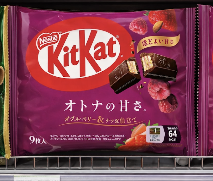Vegetable oil (domestically produced), sugar, cocoa mass, biscuit (wheat flour, sugar, shortening, salt), wheat flour, lactose, whole milk powder, cocoa butter, raspberry juice powder, cocoa powder, dried strawberry, almond paste, yeast