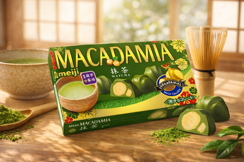 Sugar (foreign-manufactured), cocoa butter, macadamia nuts, lactose, whole milk powder, vegetable oil, matcha, skim milk powder